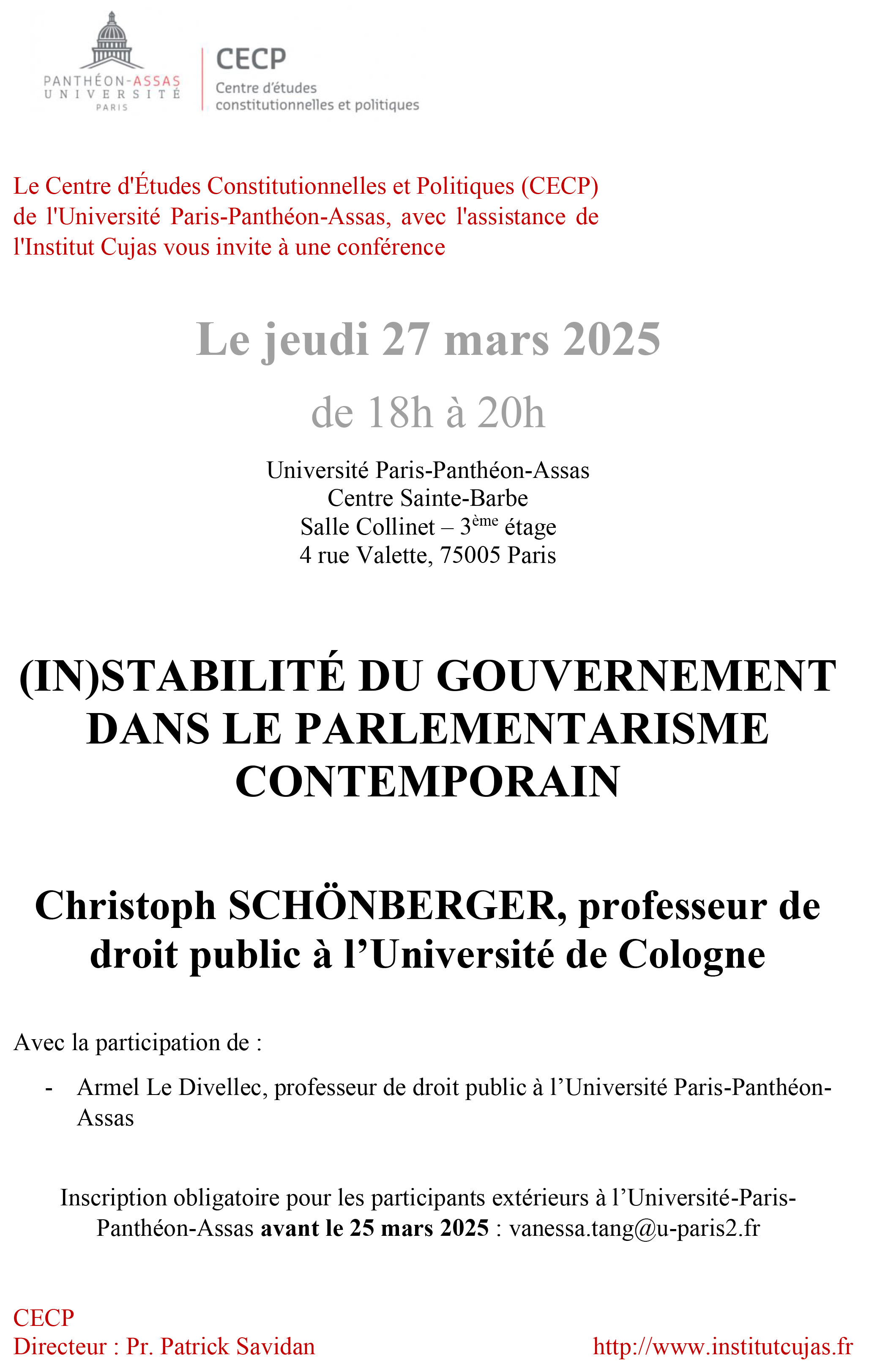 Vendredi 4 mars  Conférence (11h00-13h00) / DPA Christoph SCHONBERGER : L'idée de suprématie de la constiution
