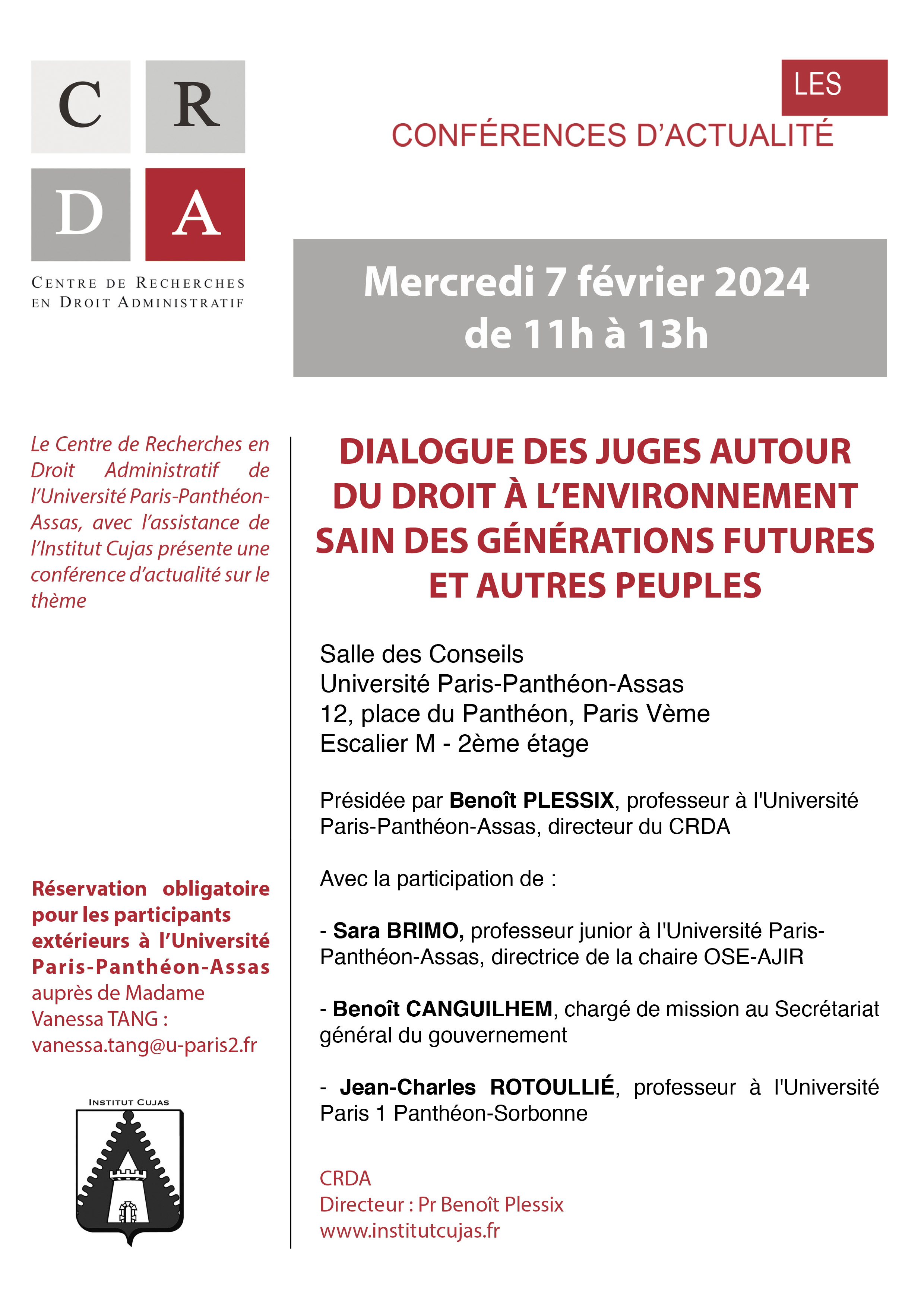 | Jeudi 6 décembre | Conférence d’actualité (14h-16h) | La reconnaissance « d’espérances légitimes » par le Conseil d’État |