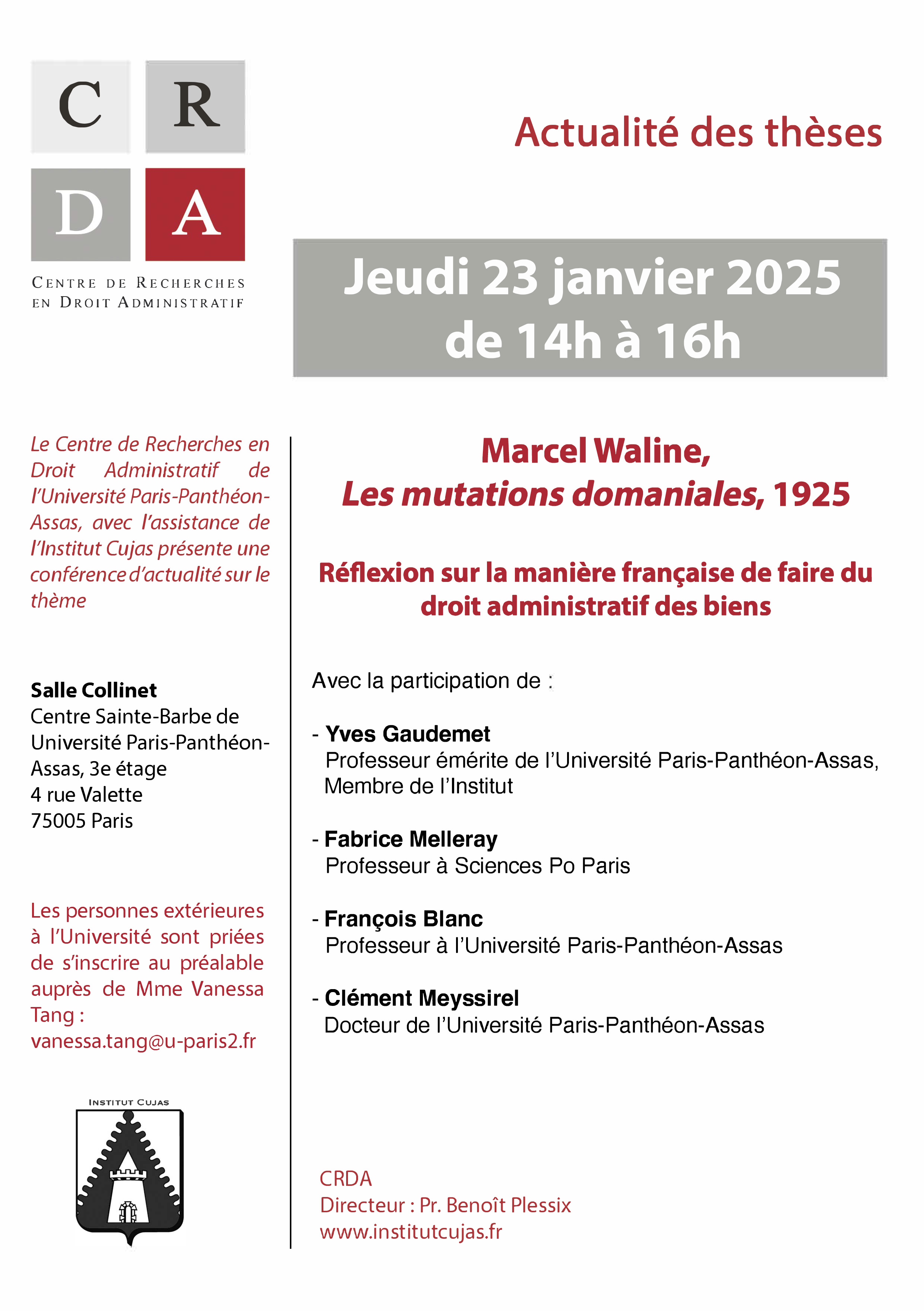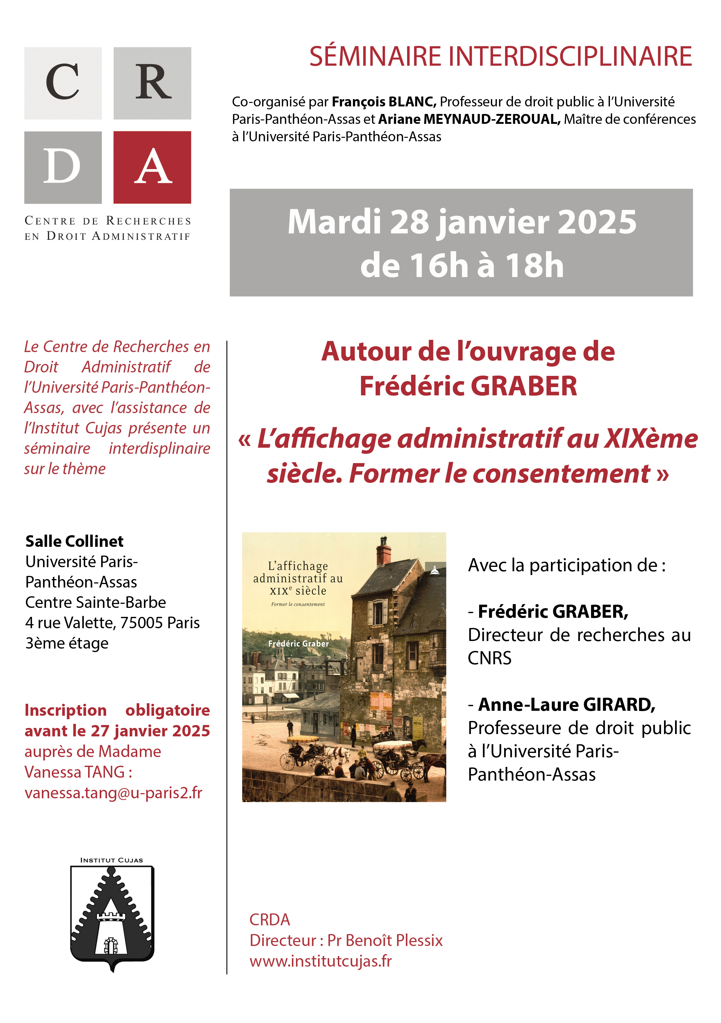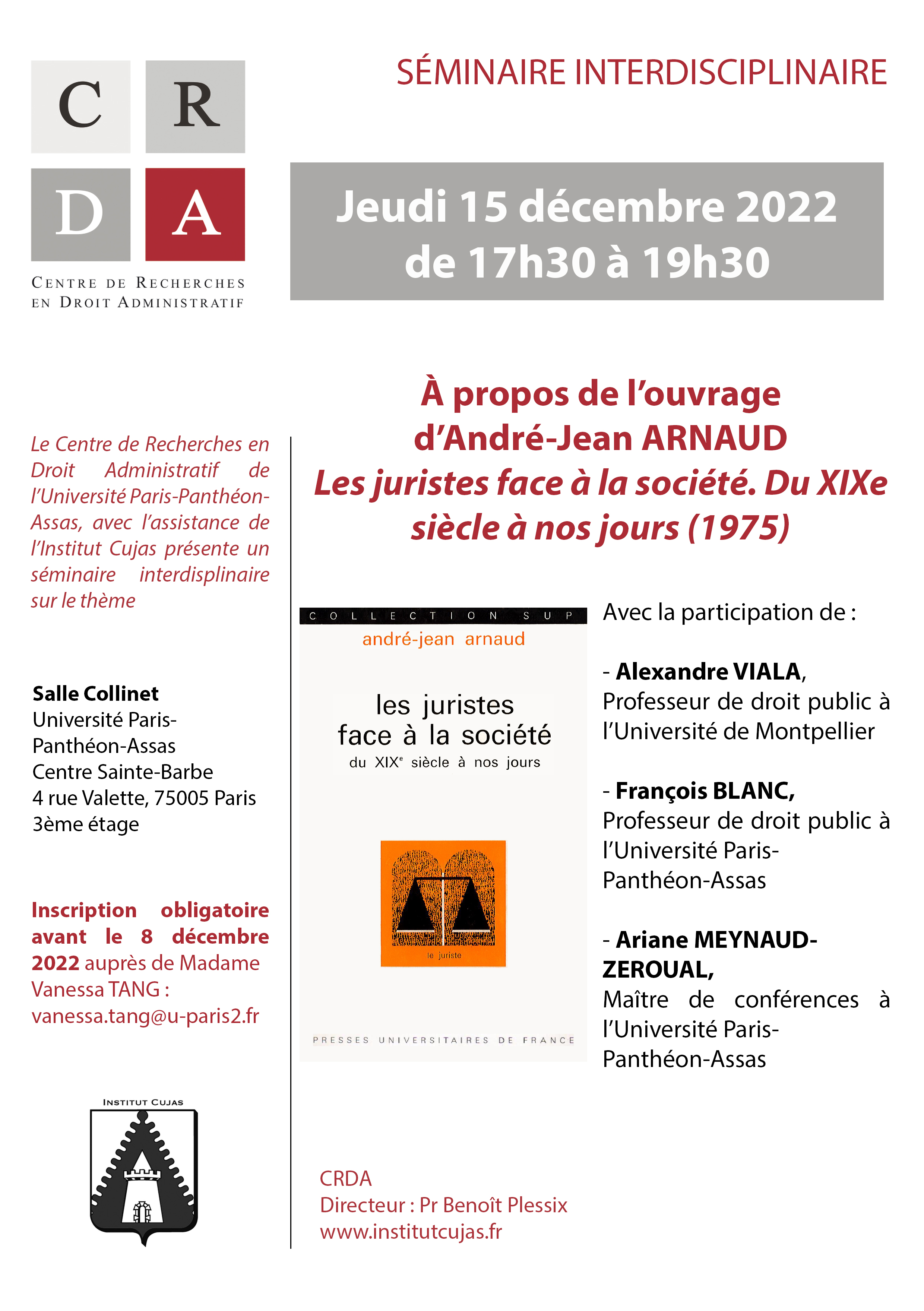| Vendredi 20 décembre | Les figures administrativistes de la Faculté de Droit de Paris (9h30-12h30) | Louis Antoine MACAREL (1790-1851) |