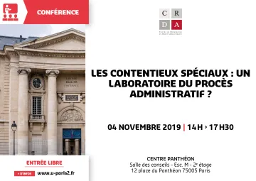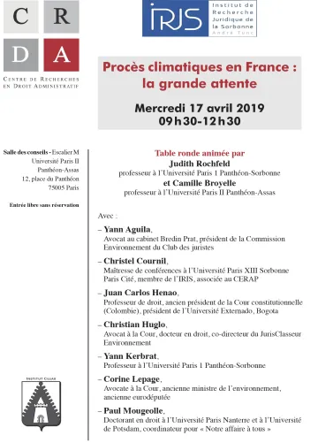 | Lundi 19 mai | Les rendez-vous du processualiste / Association du Master II Justice et droit du procés | La réforme du Tribunal des conflits |