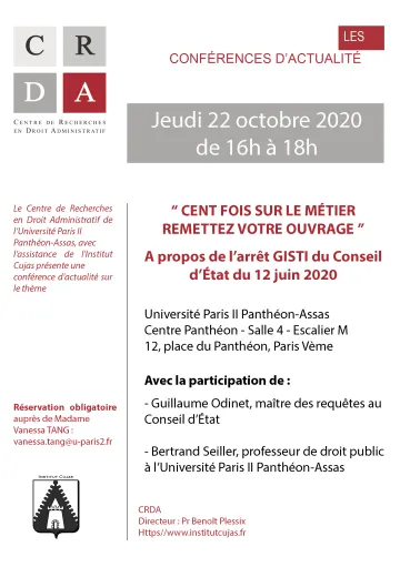 | Vendredi 19 juin | Conférence d'actualité (10h00-12h00) | Mort d'un grand arrêt ? À propos de la jurisprudence Entreprise Peyrot |