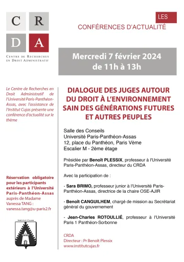 | Jeudi 23 juin | Conférence d'actualité (14h00-16h00) | Juger le droit souple. À propos des arrêts du Conseil d'État du 21 mars 2016 |