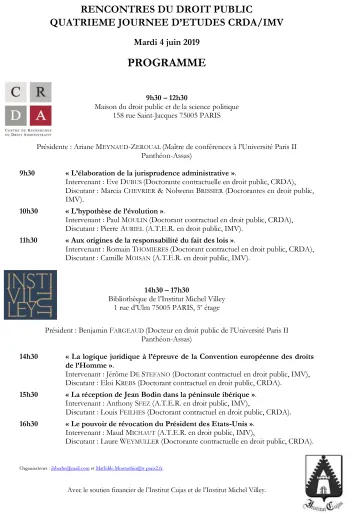 | Vendredi 19 mai | Journée d'études partagée avec l'Institut Michel Villey (09h30-17h30) | |