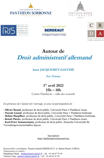 | Jeudi 9 avril | Table ronde (18h00-20h00) | Law and Administrative rulemaking processes, Autour de l'ouvrage de Susan ROSE-ACKERMAN |